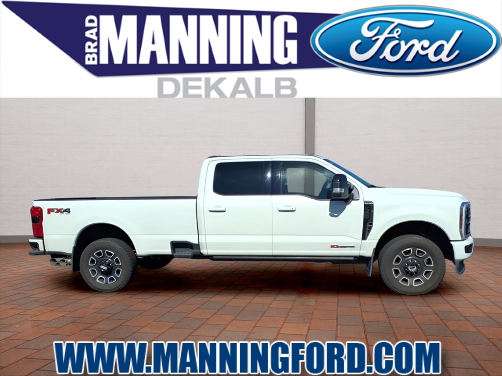 F-350SD Platinum, 6.7L High Output Power Stroke V8 Diesel, 5th Wheel/Gooseneck Hitch Prep Package, FX4 Off-Road Package, Twin Panel Power Moonroof.*** Brad Manning Ford has been in the automobile business for over 100 years!!! Buy with peace of mind knowing most of our used vehicles come with a 90 day/ 3,000 mile powertrain warranty! Serving the communities of DeKalb, Sycamore, Rochelle, Elburn, Hinckley, Geneva, St Charles, Sandwich, Malta, Genoa, Hampshire, Aurora, Oswego, Oregon, Kirkland, Kingston, Waterman, and Shabbona. 5th Wheel/Gooseneck Hitch Prep Package, FX4 Off-Road Package (Hill Descent Control, Off-Road Specifically Tuned Shock Absorbers, and Unique FX4 Off-Road Box Decal), Order Code 713A, Snow Plow Prep Package, F-350SD Platinum, 6.7L High Output Power Stroke V8 Diesel, Twin Panel Power Moonroof, 14 Speakers, 4-Wheel Disc Brakes, 410 Amp Dual Alternators, ABS brakes, Adjustable pedals, Air Conditioning, AM/FM radio: SiriusXM with 360L, Auto High-beam Headlights, Auto tilt-away steering wheel, Auto-dimming Rear-View mirror, Automatic temperature control, Brake assist, Bumpers: body-color, Compass, Delay-off headlights, Driver door bin, Driver vanity mirror, Dual front impact airbags, Dual front side impact airbags, Electronic Stability Control, Emergency communication system: SYNC 4 911 Assist, Engine Block Heater, Flow-Through Console, Front anti-roll bar, Front Bucket Seats, Front Center Armrest, Front dual zone A/C, Front fog lights, Front License Plate Bracket, Front reading lights, Front Splash Guards/Mud Flaps (Pre-Installed), Fully automatic headlights, Garage door transmitter, Heads-Up Display, Heated door mirrors, Heated front seats, Heated rear seats, Heated steering wheel, Illuminated entry, Leather steering wheel, LED Roof Clearance Lights, Low tire pressure warning, Memory seat, Navigation System, Outside temperature display, Overhead airbag, Overhead console, Panic alarm, Passenger door bin, Passenger vanity mirror, Pedal memory, Power door mirrors, Power driver seat, Power passenger seat, Power steering, Power windows, Radio: B&O Unleashed Sound System by Bang & Olufsen, Rain sensing wipers, Rear reading lights, Rear seat center armrest, Rear Splash Guards/Mud Flaps (Pre-Installed), Rear step bumper, Rear window defroster, Remote keyless entry, Security system, SiriusXM Radio w/360L, Speed control, Split folding rear seat, Steering wheel memory, Steering wheel mounted A/C controls, Steering wheel mounted audio contro