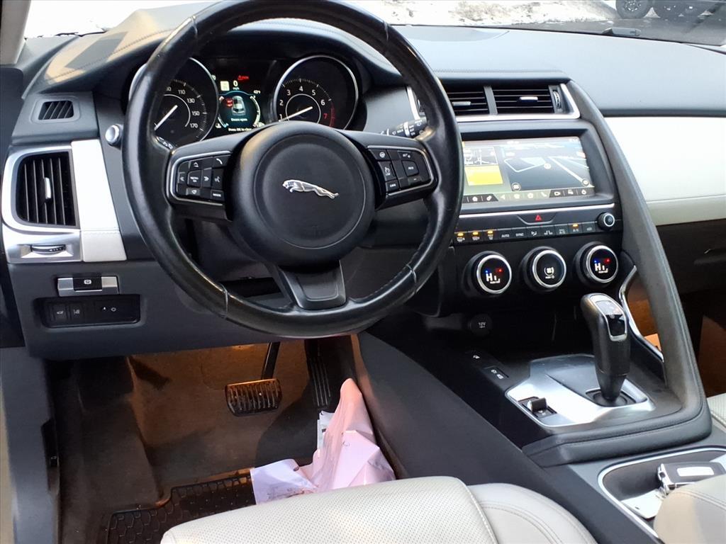 Dual front airbags, front seat mounted side-impact airbags, dual front/rear head curtain side-impact airbags, four-wheel disc brakes with anti-lock, brake assist, electronic brake force distribution, traction control, dynamic stability control, roll stability control, trailer stability assist, hill start assist, all surface progress control, emergency braking with pedestrian detection, corner brake control, rear view camera, speed limiter, driver condition monitor, lane keep assist, front/rear parking aid, automatic LED headlights, rear fog lights, rain sensing windshield wipers, push button engine start, Bluetooth hands free phone system, alarm system, remote keyless entry and tire pressure monitoring system. E-PACE R-Dynamic adds front fog lights and navigation system.