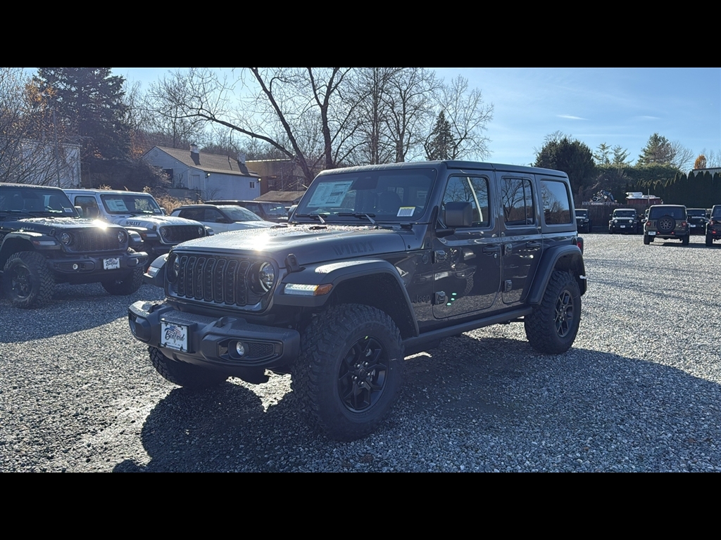 Heated Seats, iPod/MP3 Input, Satellite Radio, Back-Up Camera, 4x4, Aluminum Wheels, Hitch, BLACK 3-PIECE HARD TOP, CONVENIENCE GROUP. Granite Crystal Metallic Clearcoat exterior and Black interior. EPA 23 MPG Hwy/20 MPG City! KEY FEATURES INCLUDE4x4, Back-Up Camera, Satellite Radio, iPod/MP3 Input, Aluminum Wheels. Jeep Willys with Granite Crystal Metallic Clearcoat exterior and Black interior features a 4 Cylinder Engine with 270 HP at 5250 RPM*. OPTION PACKAGESQUICK ORDER PACKAGE 22W WILLYS 2.0L I4 DOHC DI Turbo Engine w/ESS, 8-Speed Automatic 850RE Transmission, 7 & 4 Pin Wiring Harness, Conventional Differential Front Axle, 4-Wheel Drive Swing Gate Decal, Black Grille, Injection Molded Black Rear Bumper, Dana M210 Wide HD Tube Front Axle, Daytime Running Lamps LED Accents, Front LED Fog Lamps, LED Premium Reflector Headlamps, E-Locker Rear Axle, Corning Gorilla Glass, Security Alarm, Class II Receiver Hitch, Mold In Color Bumper w/Gloss Black, Advanced Brake Assist, Automatic Headlamps, Off-Road Plus Mode, Willys Hood Decal, Full Speed Forward Collision Warning Plus, Rock Protection Sill Rails, Power Heated Mirrors, Enhanced Adaptive Cruise Control, Auxiliary Switches, Dana M220 Wide Rear Axle, Molded in Color Rubicon Highline Flare, Premium, 8-SPEED AUTOMATIC 850RE TRANSMISSION Adaptive Cruise Control w/Stop, Anti-Lock 4-Wheel Disc Brakes, Integrated Radar Camera Module (IRCM), Dana M200 Rear Axle, Selec-Speed Control, BLACK 3-PIECE HARD TOP Freedom Panel Storage Bag, Rear Window Defroster, Rear Window Wiper/Washer, CONVENIENCE GROUP Emergency/Assistance Call, 2-Door Passive Entry, Front Door Locks, Cluster 7.0 TFT Color Display, Universal Garage Door Opener, Heated Front Seats, Air Conditioning w/Auto Temp Control, Heated Steering Wheel, Air Filtering, 2.0L I4 DOHC DI TURBO ENGINE W/ESS. MORE ABOUT USOur dealership is family-owned and operated, and has an extensive history in the area. We proudly serve the Bedford Hills, Croton Falls, Mt Kisko, Westchester County areas with a complete automotive experience. We offer a full stock of new Jeep, Ram, Dodge, and Chrysler vehicles, certified pre-owned models, as well as a variety of used cars, trucks, and SUVs from various automakers. If your next vehicle is what you are looking for, Bedford is the place to go! Horsepower calculations based on trim engine configuration. Fuel economy calculations based on original manufacturer data for trim